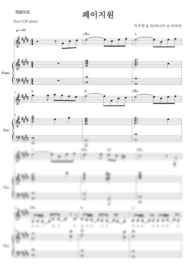 옥주현, SG워너비, 티아라 - 페이지원 (SBS드라마 커피하우스 Part.2) by 악보마트
