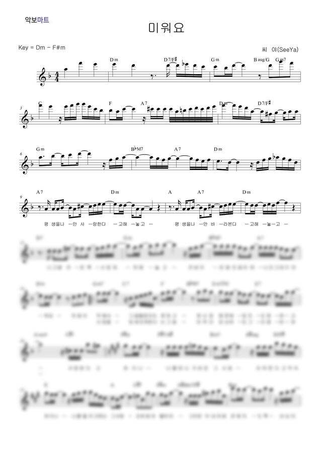 씨야 - 미워요 by 악보마트