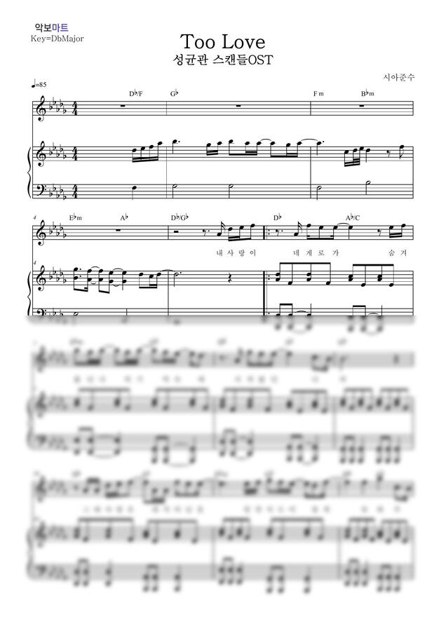 시아준수 - Too Love (성균관 스캔들 OST) by 악보마트