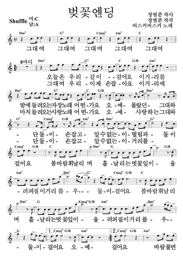 버스커 버스커 - 벚꽃 엔딩 (멜로디 악보)1