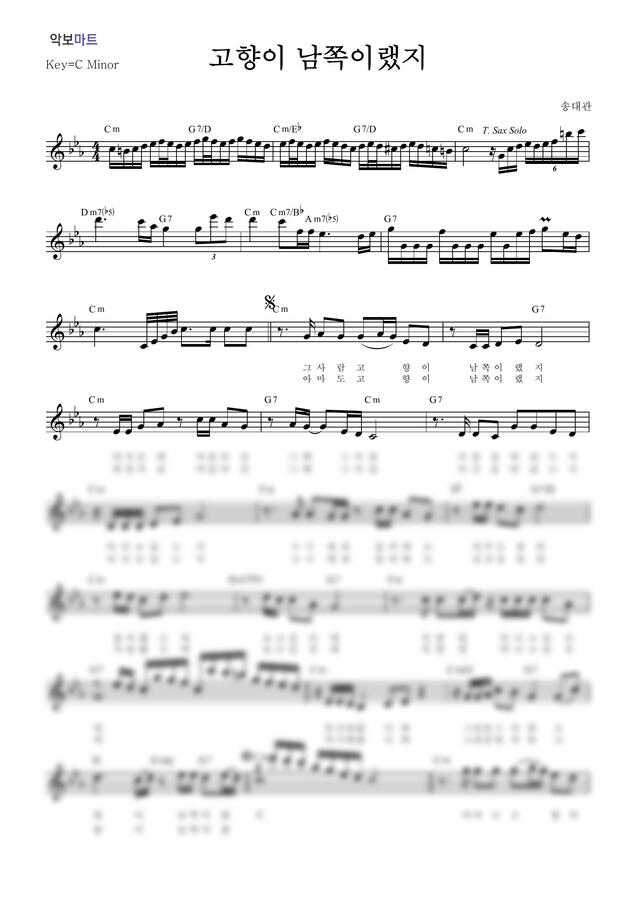 송대관 - 고향이 남쪽이랬지 by 악보마트 1p 미리보기