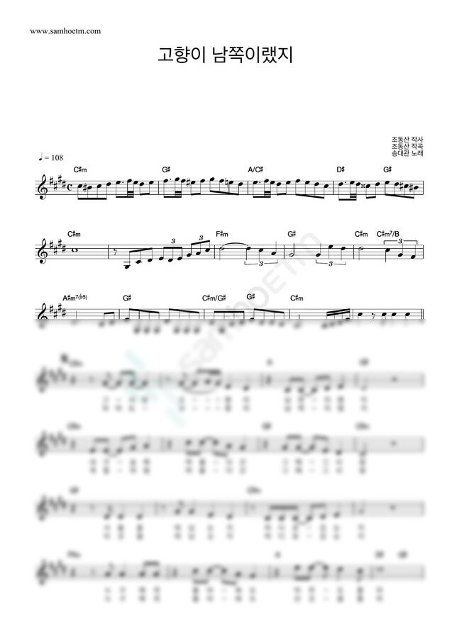 송대관 - 고향이 남쪽이랬지 by 악보마트