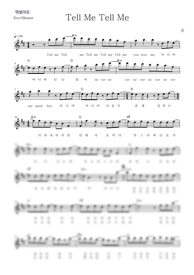 샵 - Tell Me Tell Me by 악보마트