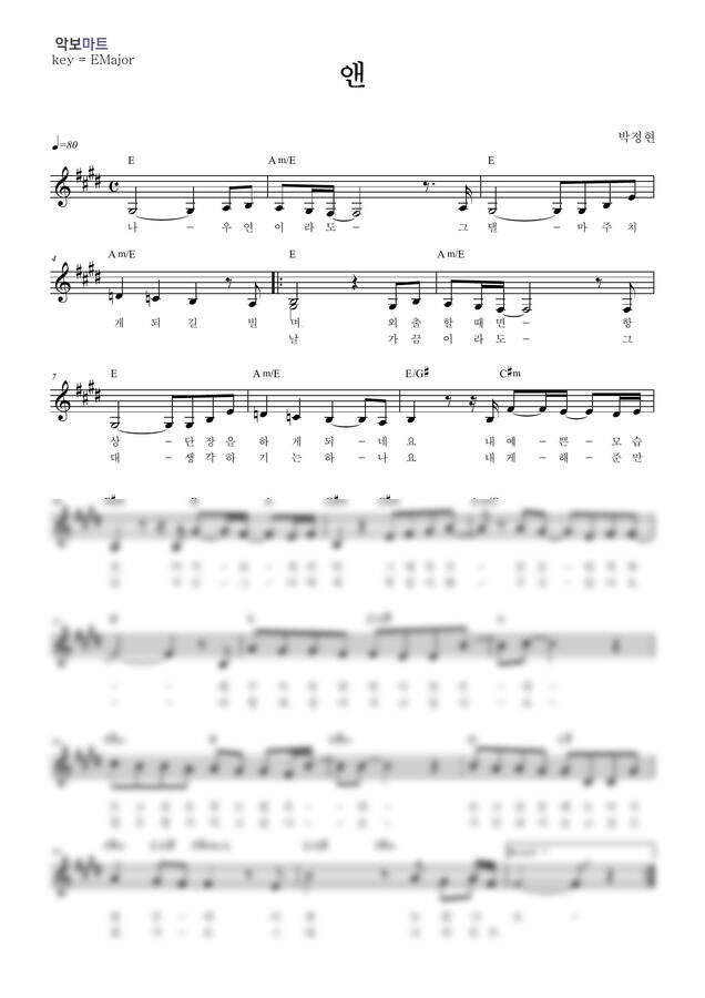 박정현 - 앤 by 악보마트