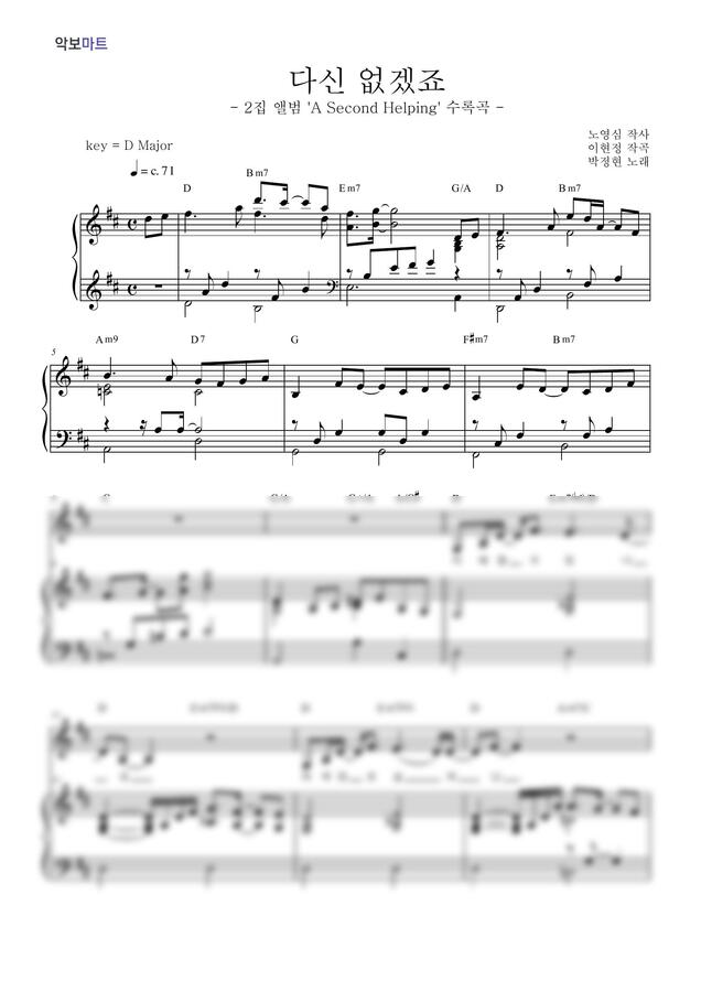 박정현 - 다신 없겠죠 by 악보마트 1p 미리보기
