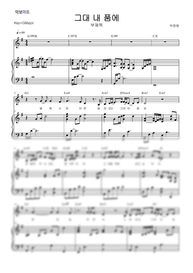 박정현 - 그대 내 품에 by 악보마트