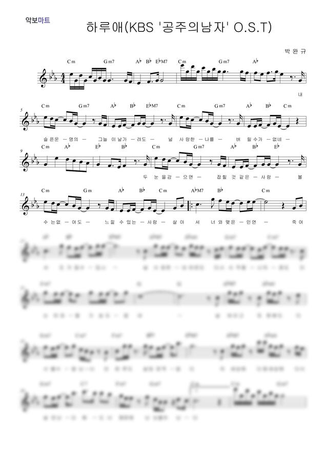 박완규 - 하루애 (KBS 공주의 남자 OST) by 악보마트