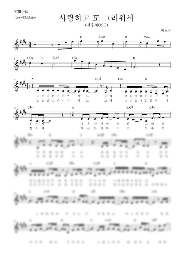 박소빈 - 사랑하고 또 그리워서 (전우치 OST) by 악보마트