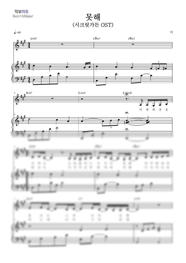 미(MIIII) - 못해 (시크릿 가든 OST) by 악보마트