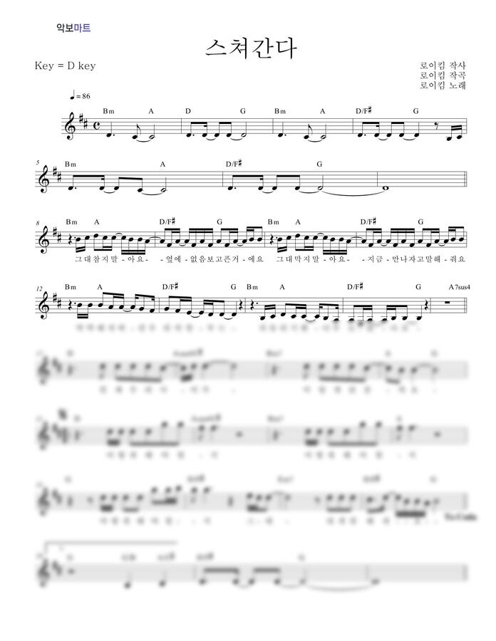 로이킴 - 스쳐간다 by 악보마트