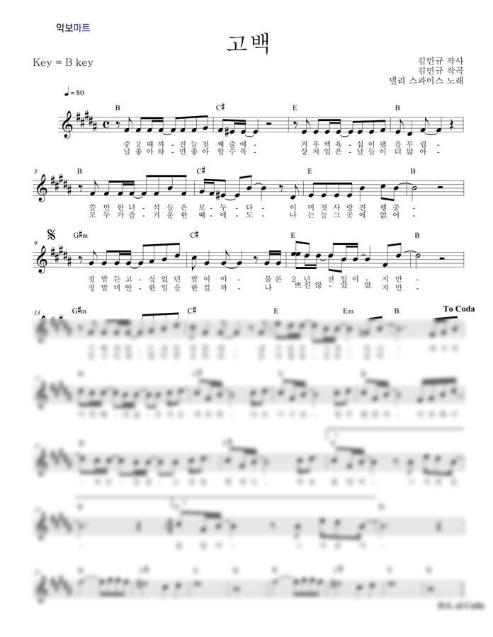 델리스파이스 - 고백 by 악보마트