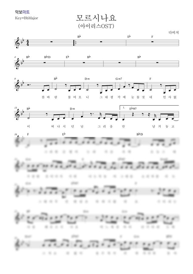 다비치 - 모르시나요 (아이리스 OST) by 악보마트
