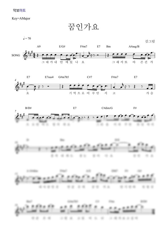 김그림 - 꿈인가요 (전우치 OST) by 악보마트