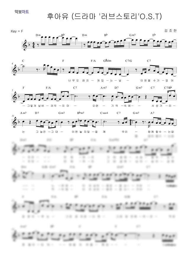 김조한 - 후아유 (드라마 러브스토리OST) by 악보마트0