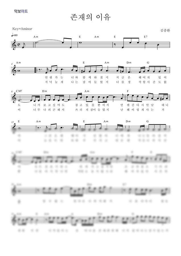김종환 - 존재의 이유 by 악보마트