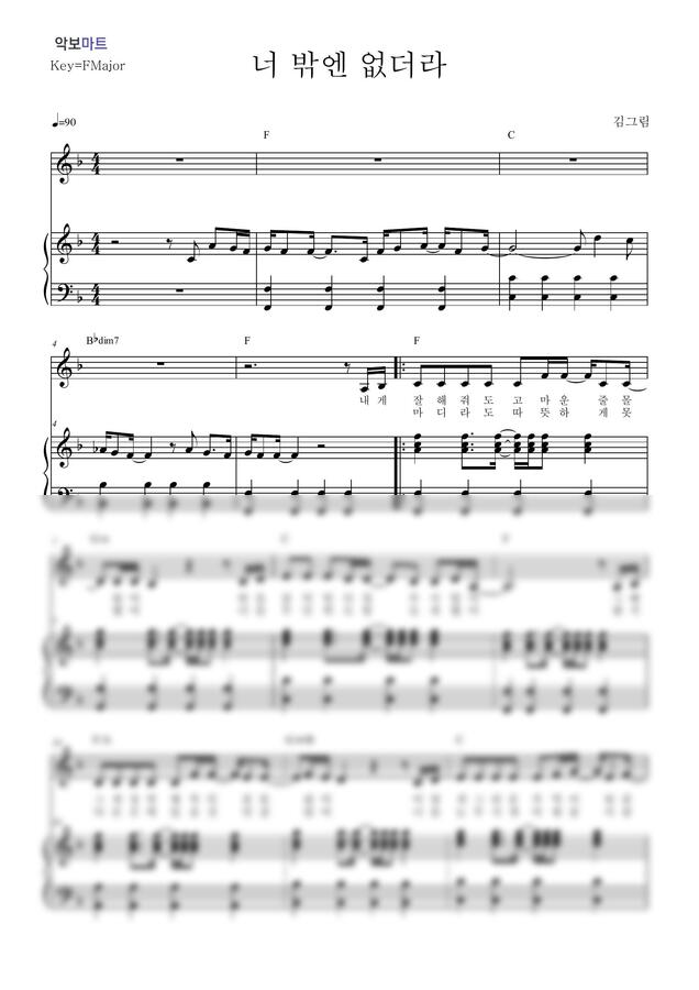 김그림 - 너 밖엔 없더라 by 악보마트