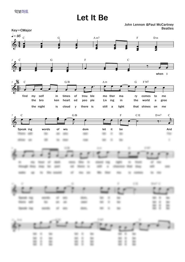 The Beatles - Let It Be (멜로디 악보) by 악보마트