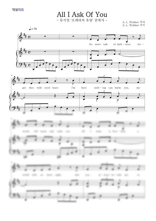 Andrew Lloyed Webber - All I Ask Of You by 악보마트