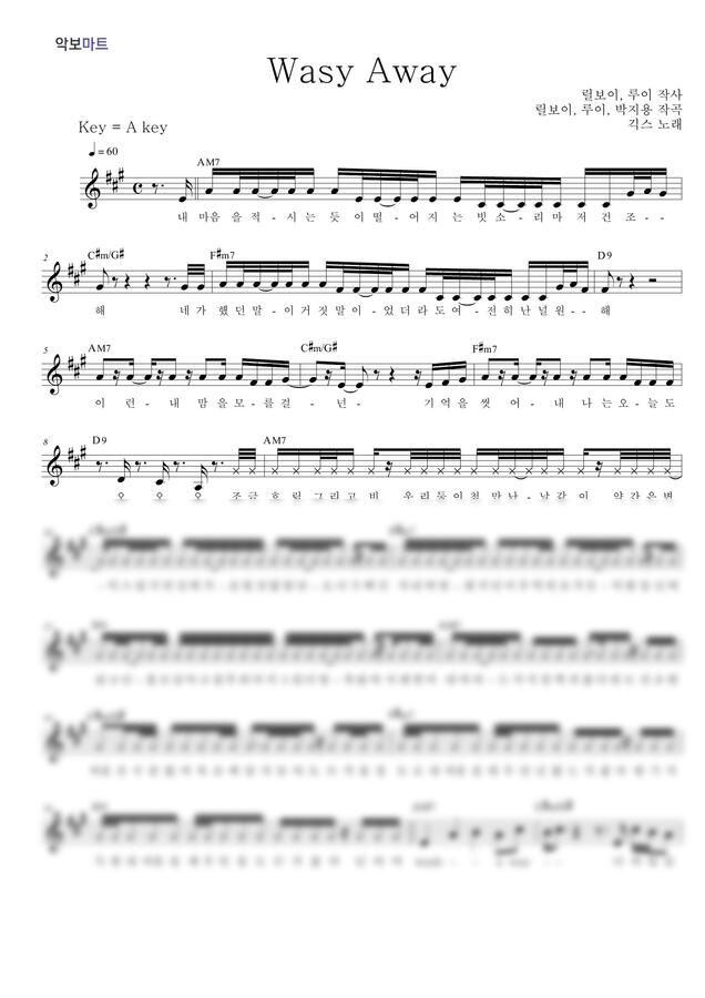 긱스 - Wash Away by 악보마트