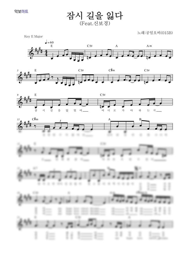 015B (공일오비) - 잠시 길을 잃다 (멜로디 악보) by 악보마트