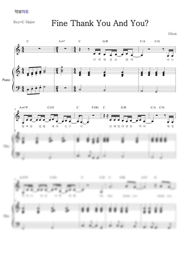 10cm - Fine Thank You And You? by 악보마트