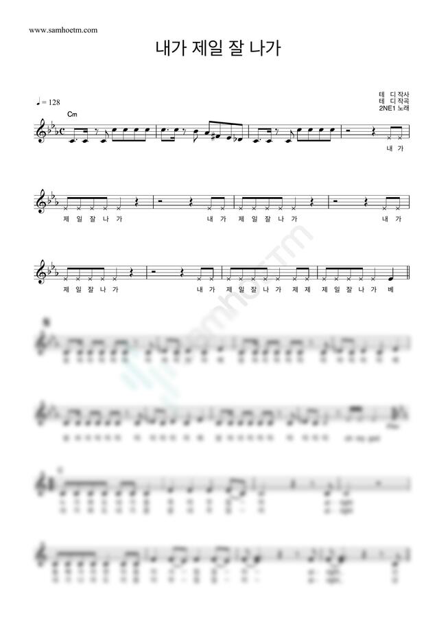 투애니원 (2NE1) - 내가 제일 잘나가 (멜로디 악보) by 악보마트0