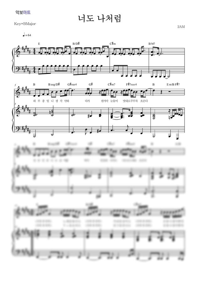 2AM - 너도 나처럼 (피아노 3단) by 악보마트