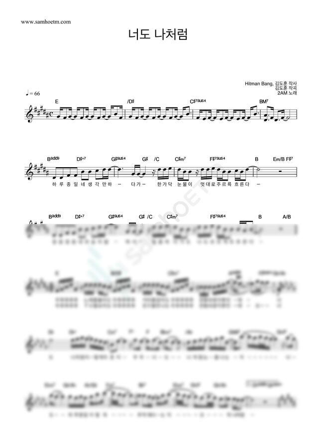 2AM - 너도 나처럼 (멜로디 악보) by 악보마트