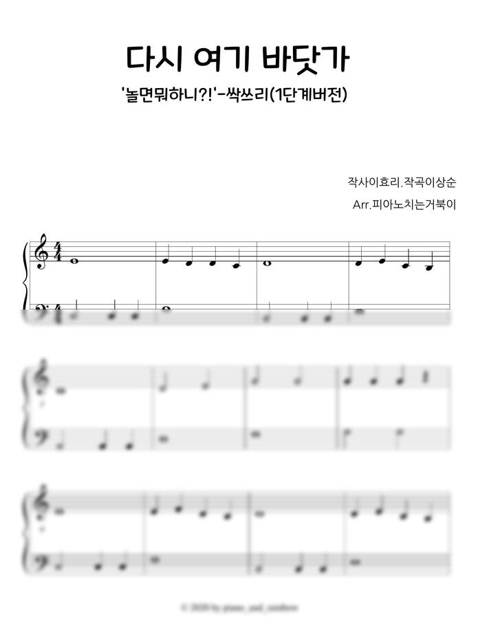 싹쓰리-다시여기바닷가 피아노솔로 (기초1단계)악보입니다.
