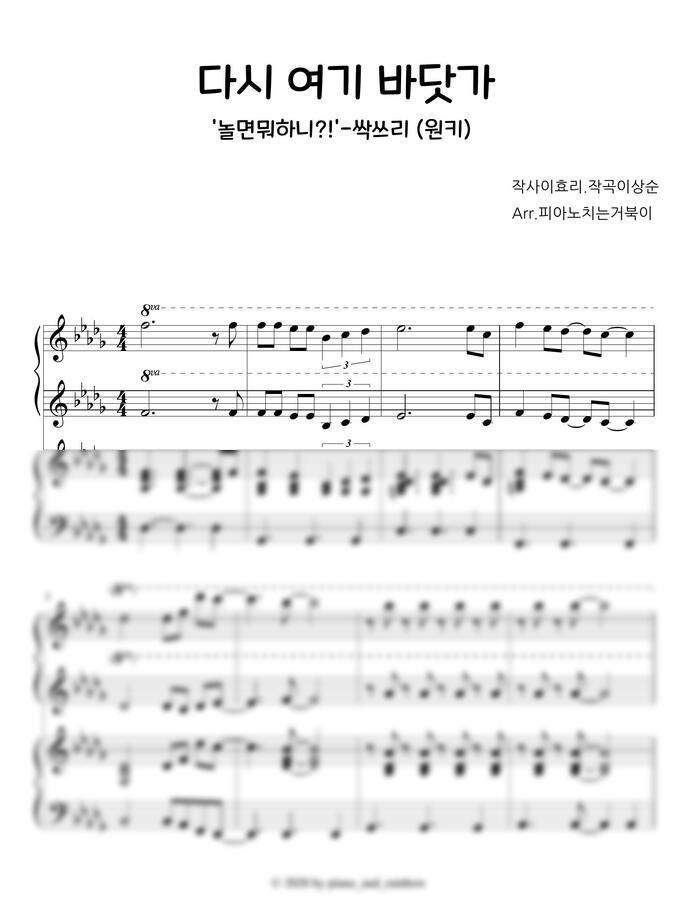 싹쓰리 (유두래곤, 린다G, 비룡) - 다시 여기 바닷가 (4 hands) by 피아노치는거북이 1p 미리보기