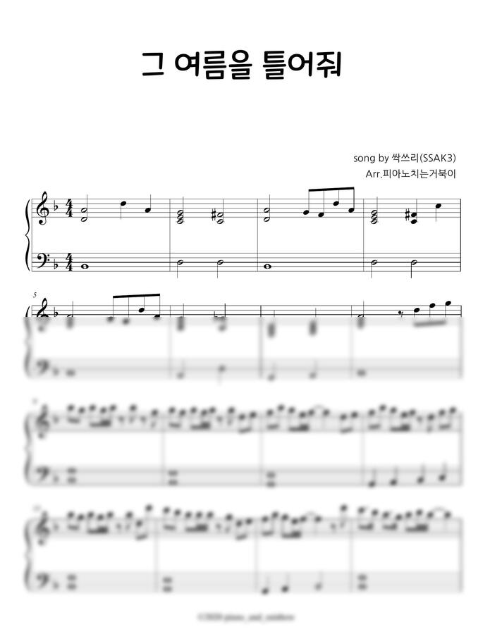 싹쓰리-그 여름을틀어줘 피아노솔로 입니다.