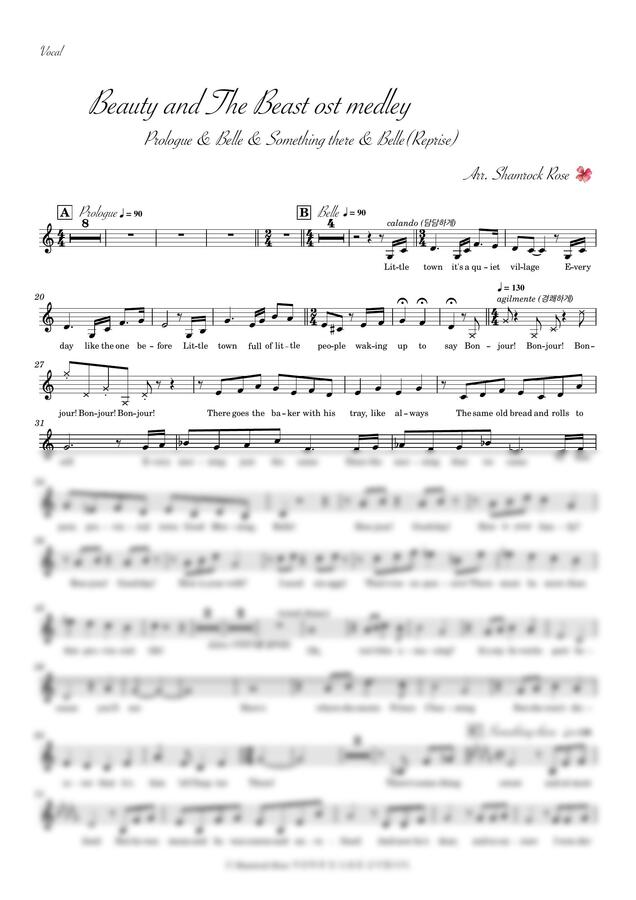 미녀와 야수 OST - Beauty and The Beast Medley (가사, 어려운 반주악보) by 샴록로즈1