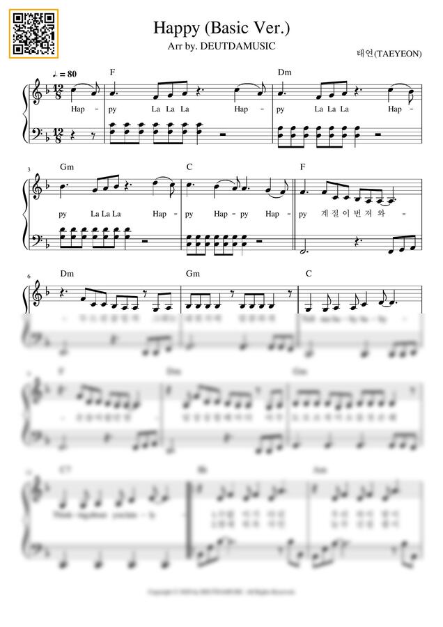 태연 (TAEYEON) - Happy (쉬운 악보) by DEUTDAMUSIC