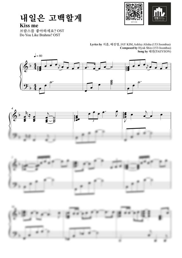 TAEYEON(태연) - Kiss me(내일은 고백할게) (Do You Like Brahms? 브람스를 좋아하세요? OST) [PIANO COVER]