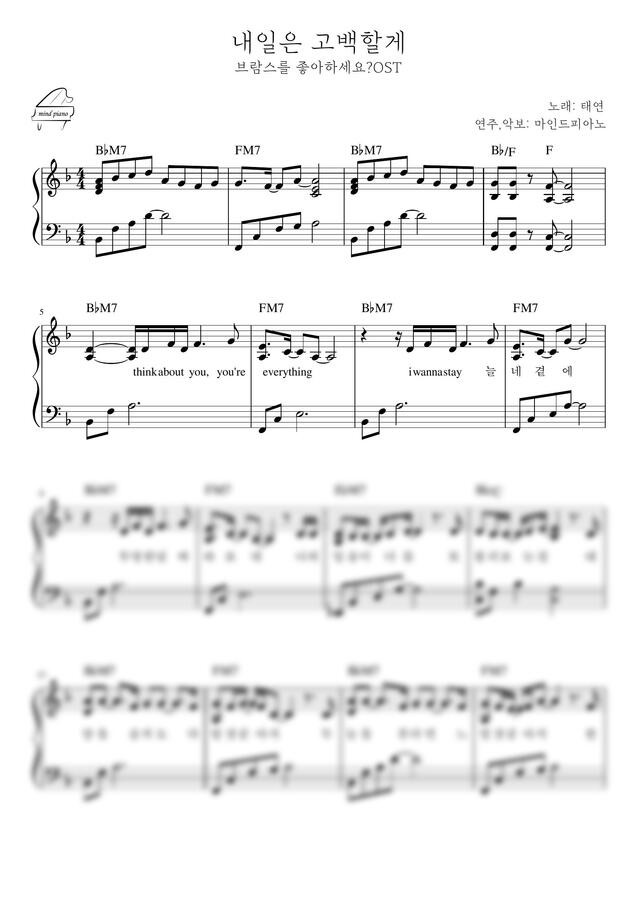 태연 (TAEYEON) - 내일은 고백할게 (브람스를 좋아하세요? OST) by 마인드피아노