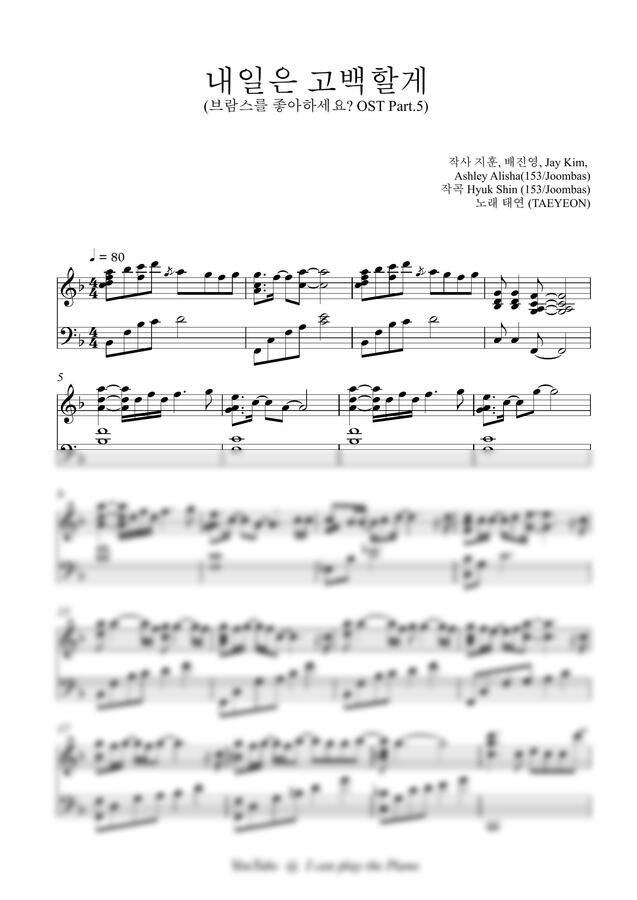 태연 (TAEYEON) - 내일은 고백할게 by I can play the Piano1