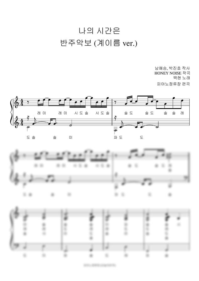 백현 (BAEKHYUN) - 나의 시간은 (청춘기록 OST, 계이름 반주 악보) by 피아노정류장0
