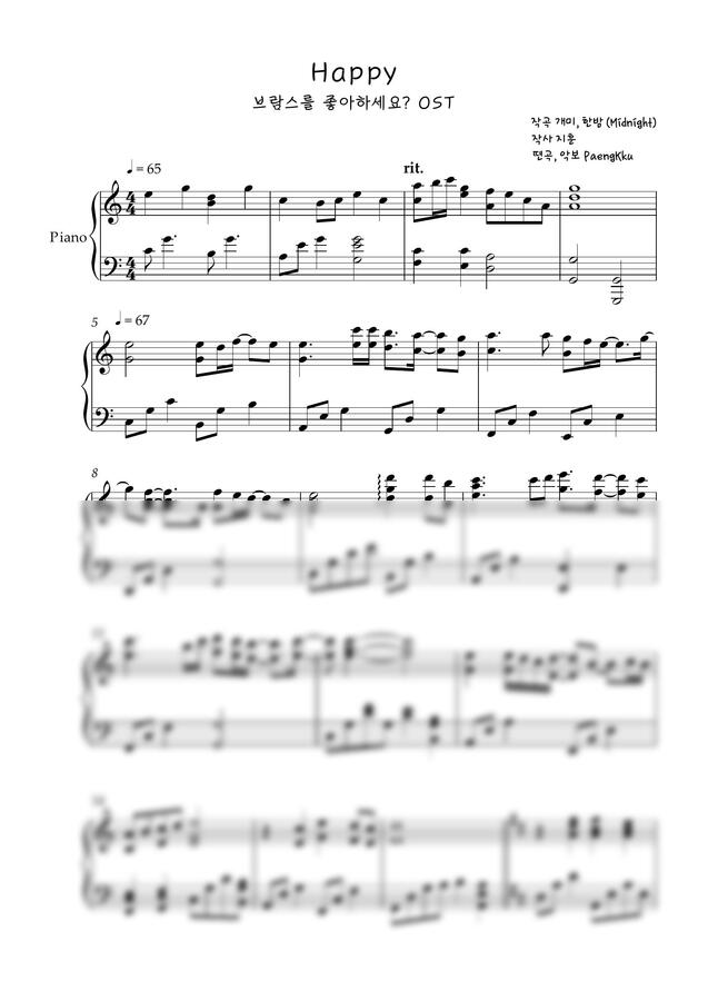 백현 (BAEKHYUN) - happy (브람스를 좋아하세요? OST, 쉬운 악보) by 팽꾸