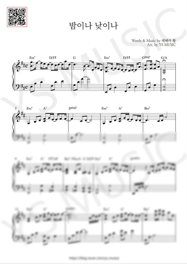 밤이나 낮이나 피아노 멜로디 커버 악보입니다^_^