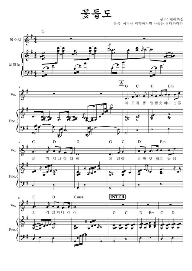 제이워십 - 꽃들도 (피아노 3단) by 시작은미약하지만나중은창대하리라