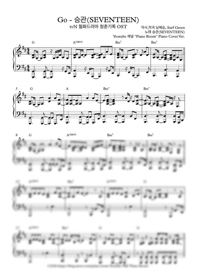 승관 (SEVENTEEN) - Go (청춘기록 OST) by .PianoRoom피아노 룸 2p 미리보기