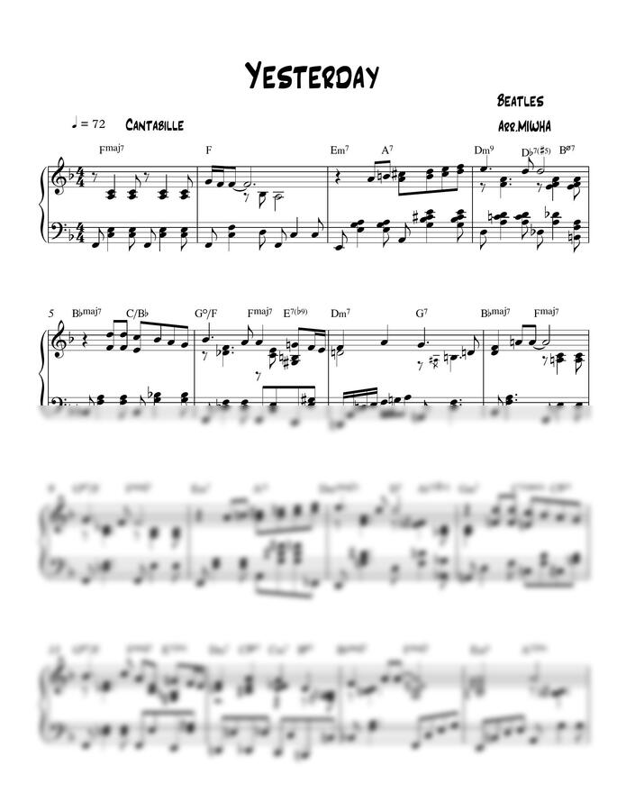 Beatles 의 유명한 곡 Yesterday 를 재즈 코드를 사용하여 리하모니 하였습니다.