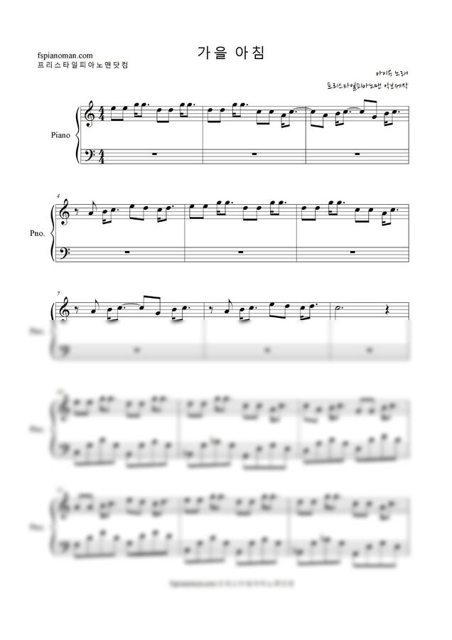 아이유 - 가을 아침 (다장조) by 프리스타일피아노맨닷컴1