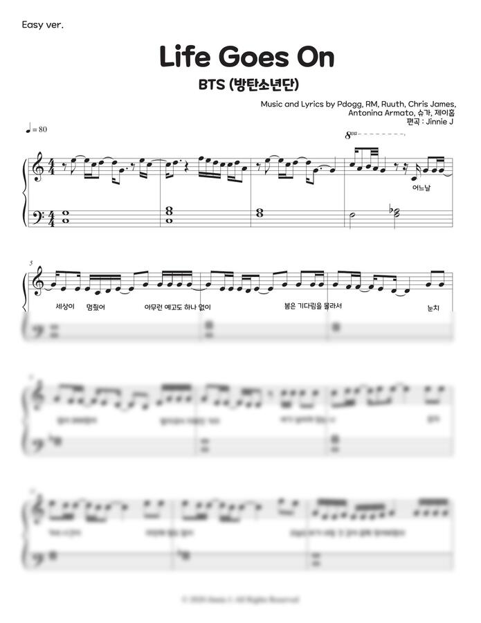 방탄소년단의 새로운 앨범의 타이틀곡 "Life Goes On" 편곡 악보 올립니다.