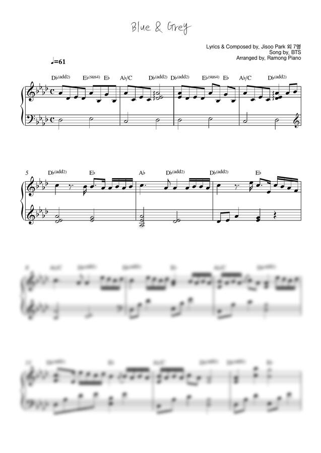 방탄소년단 (BTS) - Blue & Grey (쉬운악보) by 라몽