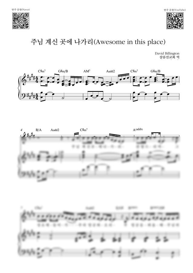 David Billington - 주님 계신 곳에 나가리 (Awesome in this place)_E Key (피아노 3단) by Samuel Park1