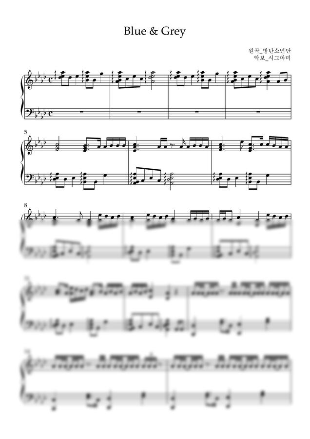 방탄소년단의 'Blue & Grey' 피아노 커버 악보입니다.