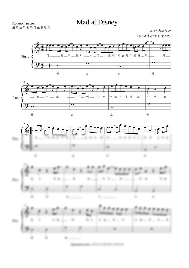salem ilese - Mad at Disney (쉬운 계이름 악보) by 프리스타일피아노맨닷컴
