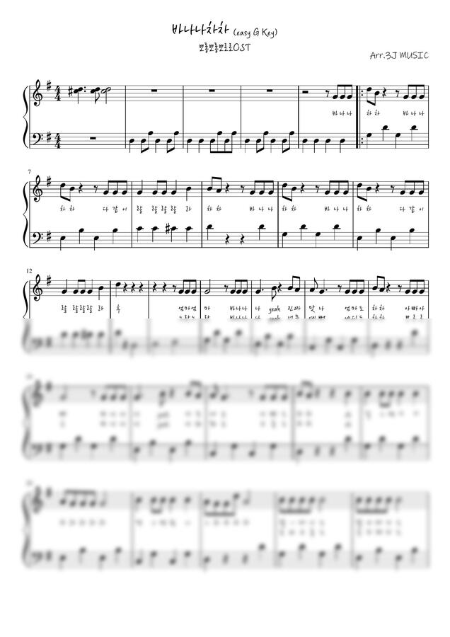 뽀롱뽀롱 뽀로로 OST - 바나나차차 (쉬운 악보) by 3J MUSIC