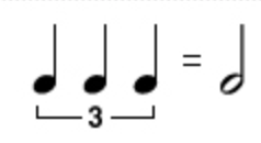 이렇게 2분음표를 3개로 나누어, 2박 3연음으로 나타내었습니다!